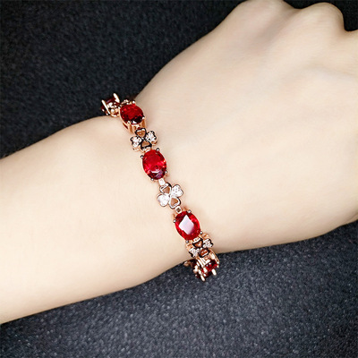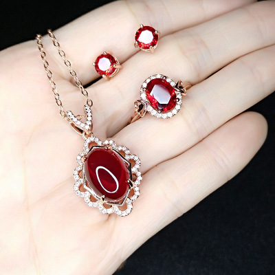 飾品套裝批發仿鴿血紅寶石首飾套裝歐奢鍍玫瑰金石榴石首飾四件套