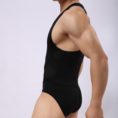 Men's underwear 80-count ice silk shapewear European and American sports one-piece shapewear body-shaping swimming underwear for men 2241