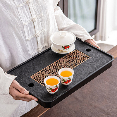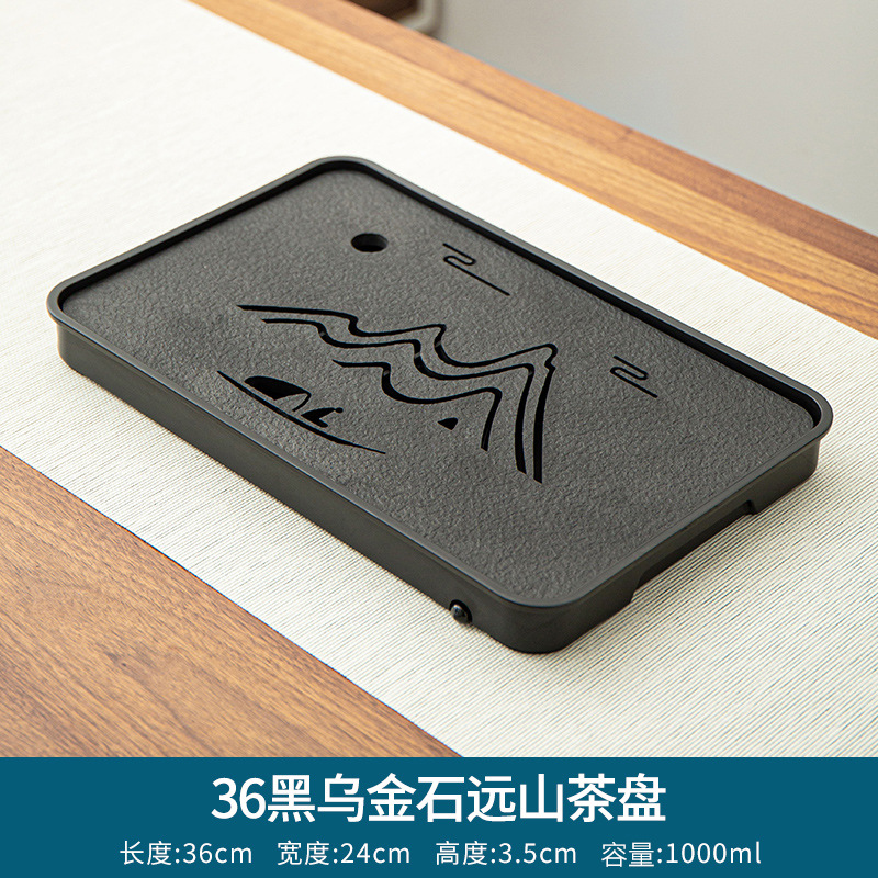 Household tea tray tea tray light luxury modern dry bubble Taiwan textile black gold stone tea sea tea set water storage drainage tray tea set