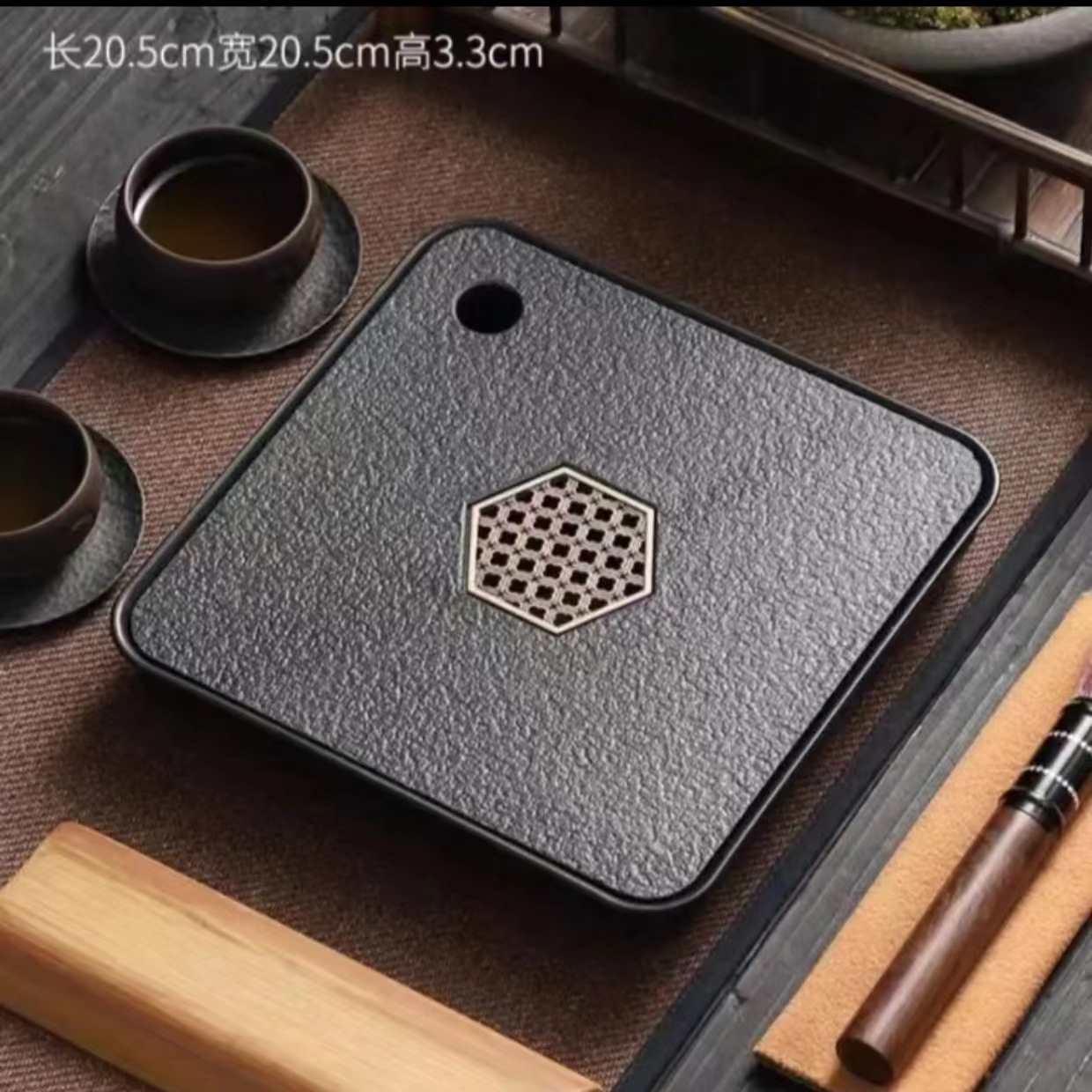 Bamboo-window grille square tea tray length 20.5 width 20.5