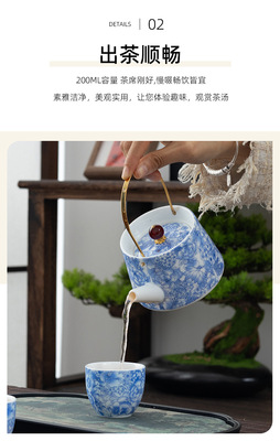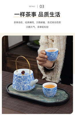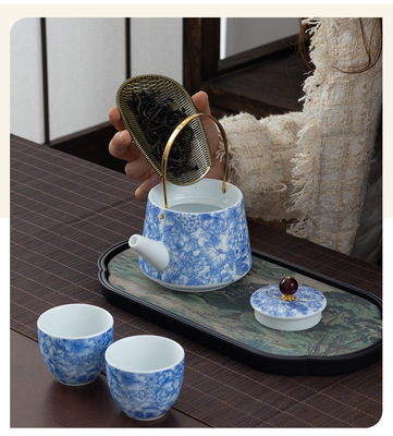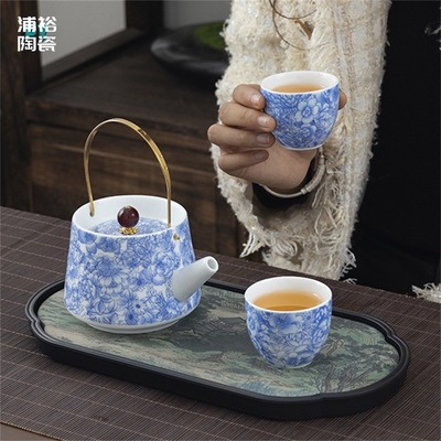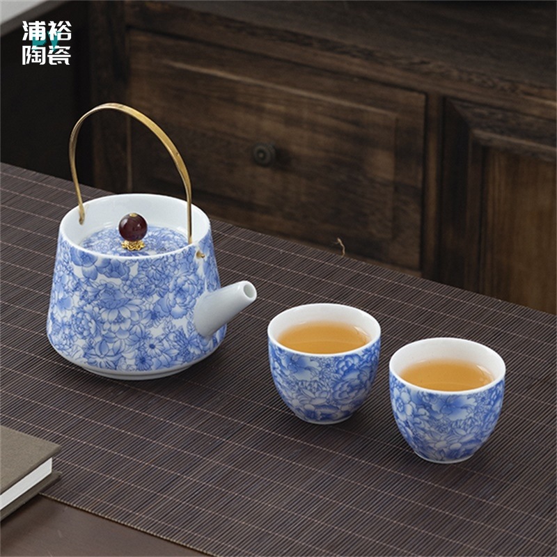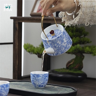 Enamel Blue-and-White Tipped Ladle Teapot with Two Cups Ceramic Tea Drinking Cups High-end Chinese Gongfu Tea Set