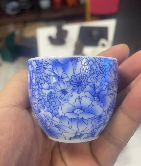 Enamel Blue and White Tea Cup
