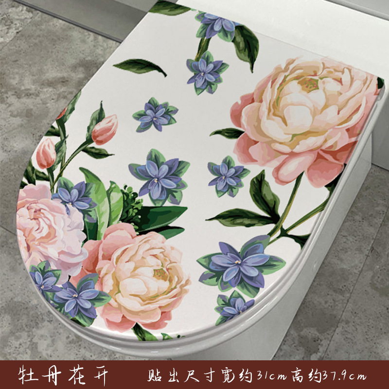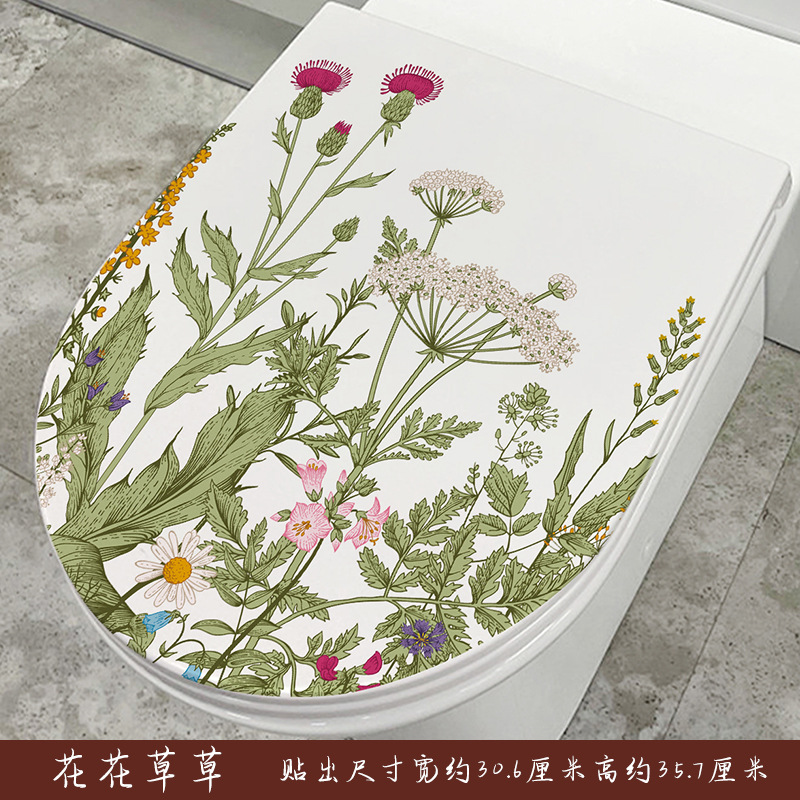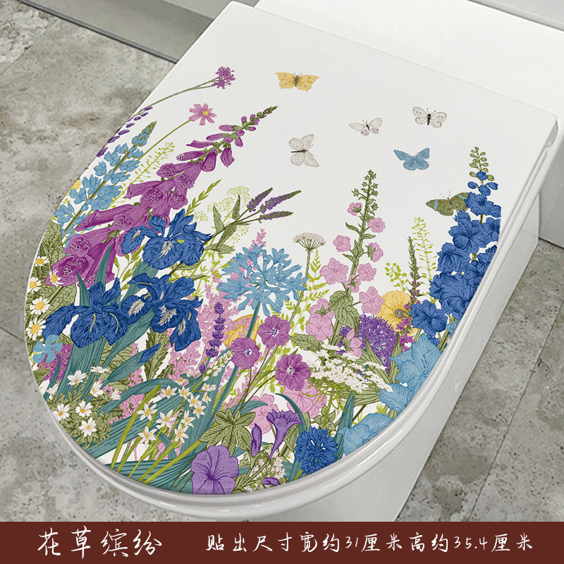 Home Toilet Seat Cover Decal Bathroom Self-Adhesive Decor Cute Dolphin Hand-painted Floral Butterfly Toilet Art