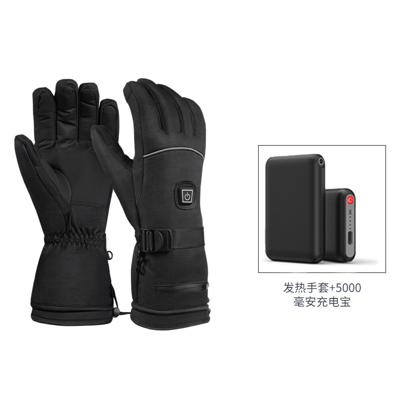 Black electric heating gloves + 1 pair of 5000 mAh power bank