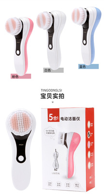 Rechargeable five-in-one facial cleansing instrument, electric facial cleansing brush to remove blackheads, facial pore cleaner, silicone facial cleansing instrument artifact