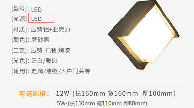 Light source power: 160MM12W square type A