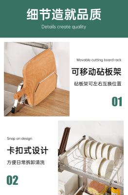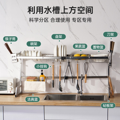 Kitchen drain rack stainless steel sink storage rack multi-functional drain rack countertop sink dishes chopstick storage