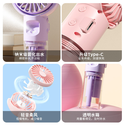 2024 New Handheld Spray Fan with Four-Speed Wind Adjustment, Portable Type-C Charging Desktop Fan Gift