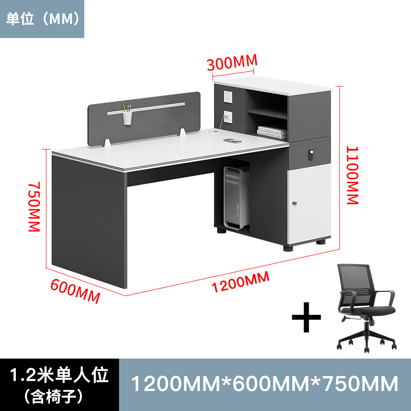 並排2人位帶雙櫃+椅子