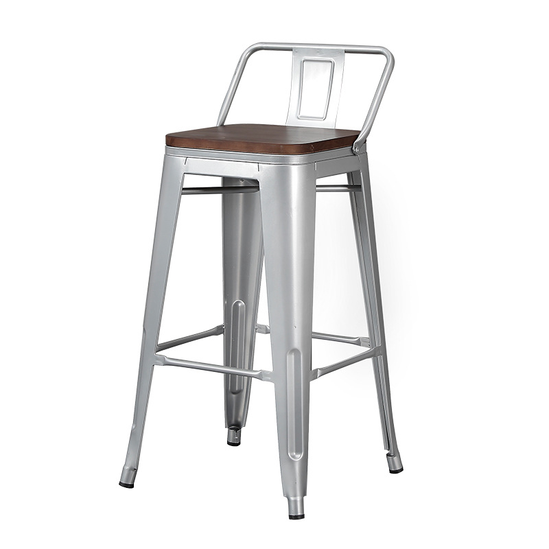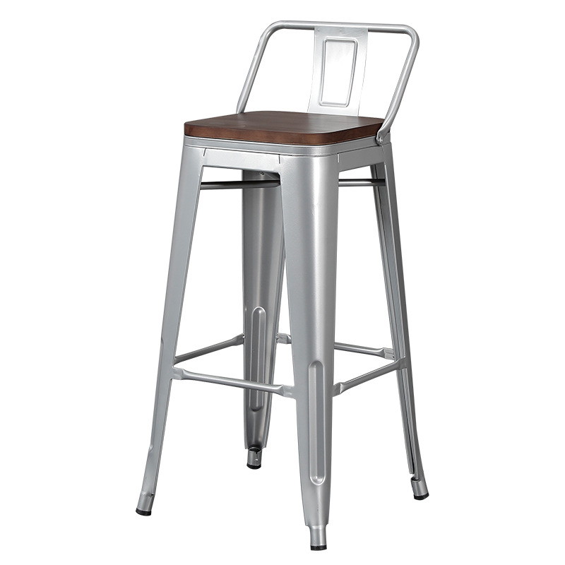 Bar chair modern minimalist high stool iron solid wood bar chair cashier home backrest high chair