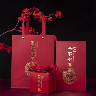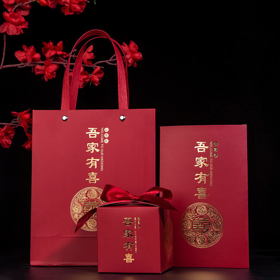 Wedding Invitation Set with Three Pieces of Chinese-Style Happy Candy Boxes, "My Home Has Joy" Invitation Suite, Chinese Style Wedding Invitations and Candy Boxes