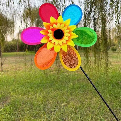 Wholesale Rainbow Plastic Sunflower Windmill Stalls Supply Kindergarten Gift Park Decorations Children's Toys