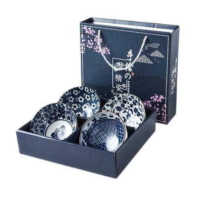 Japanese bowl and chopsticks set creative and practical gift hand-painted blue and white porcelain bowl ceramic tableware set gift box printed logo
