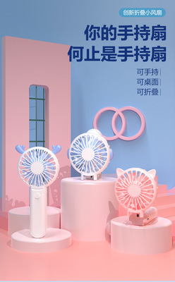 Cartoon Cute Handheld Mini Fan Portable USB Silent Small Fan Desktop Outdoor Folding Fan Wholesale