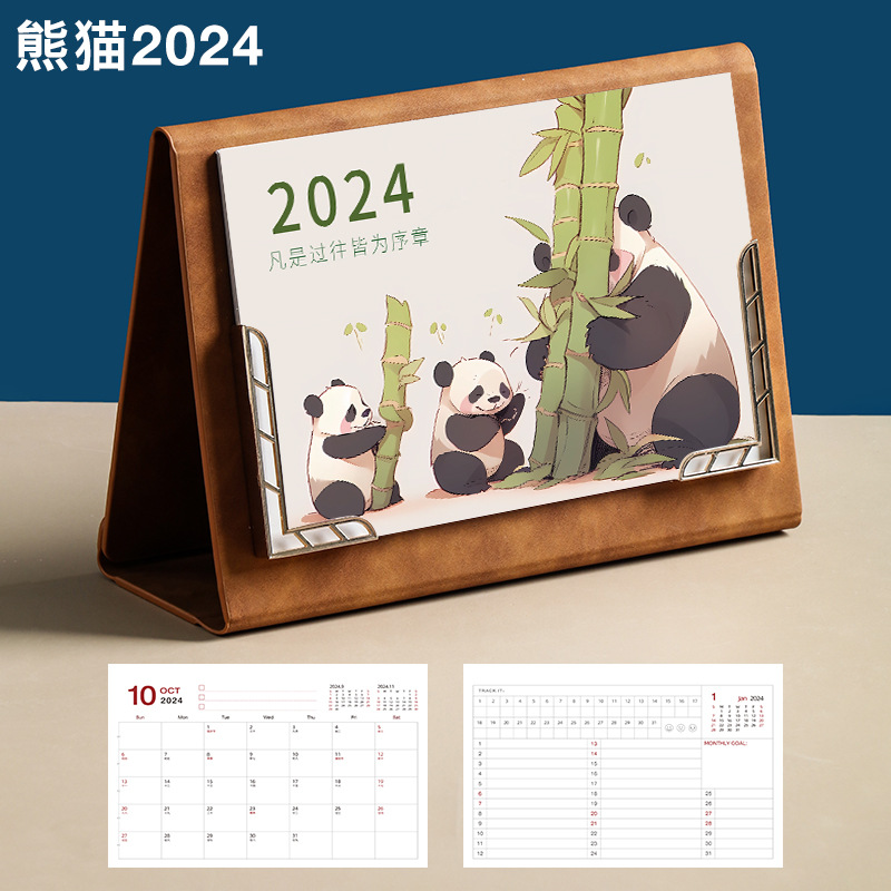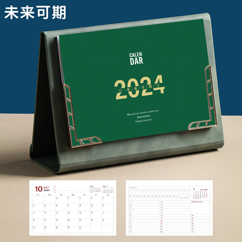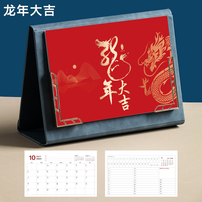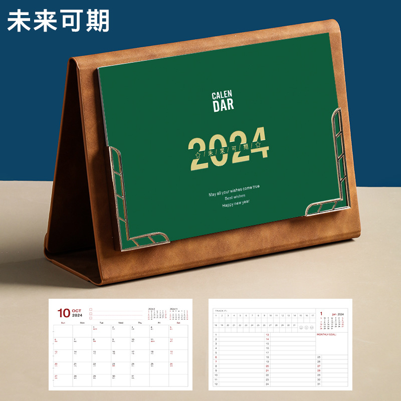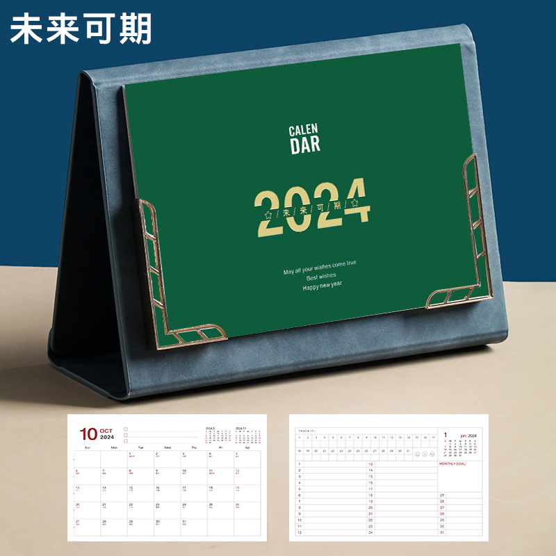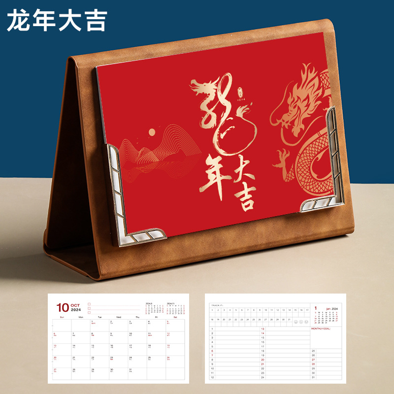 Leather desk calendar 2024 wall calendar tri-fold photo frame monthly planner office decor gift memo planning book logo printing available