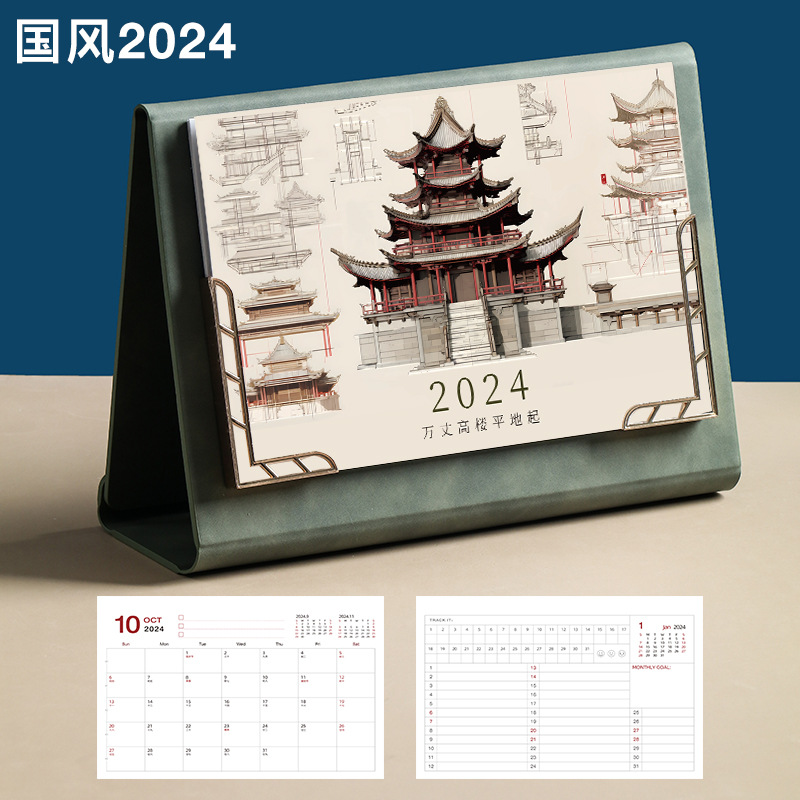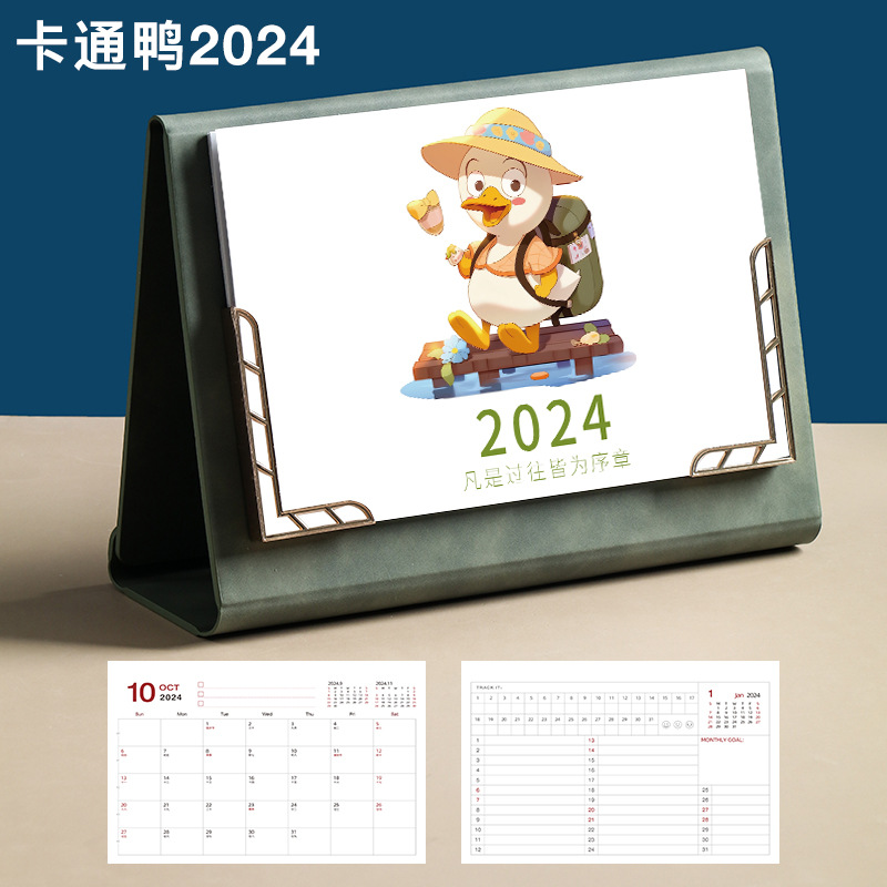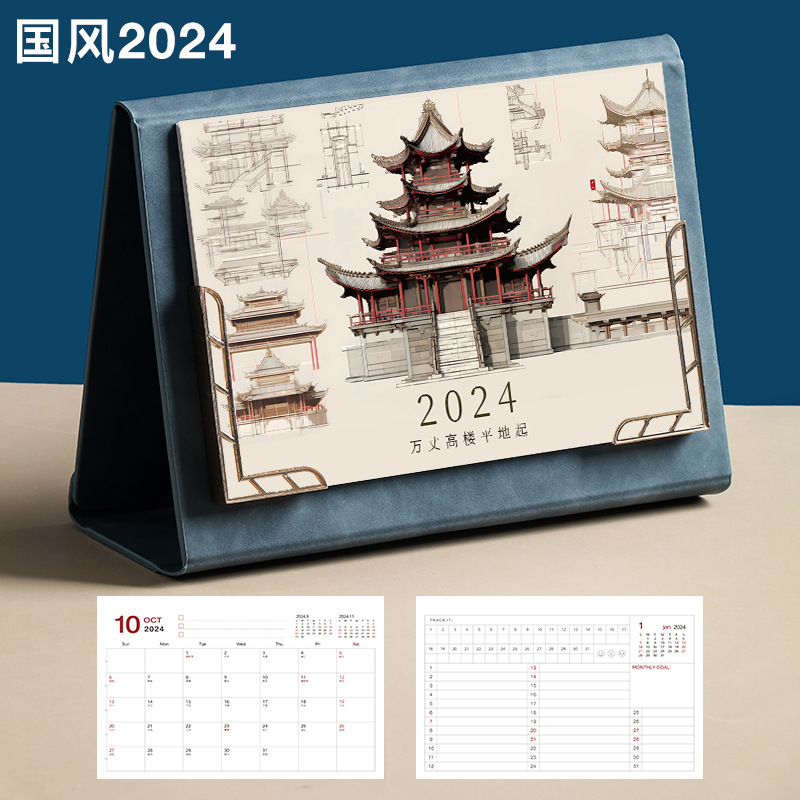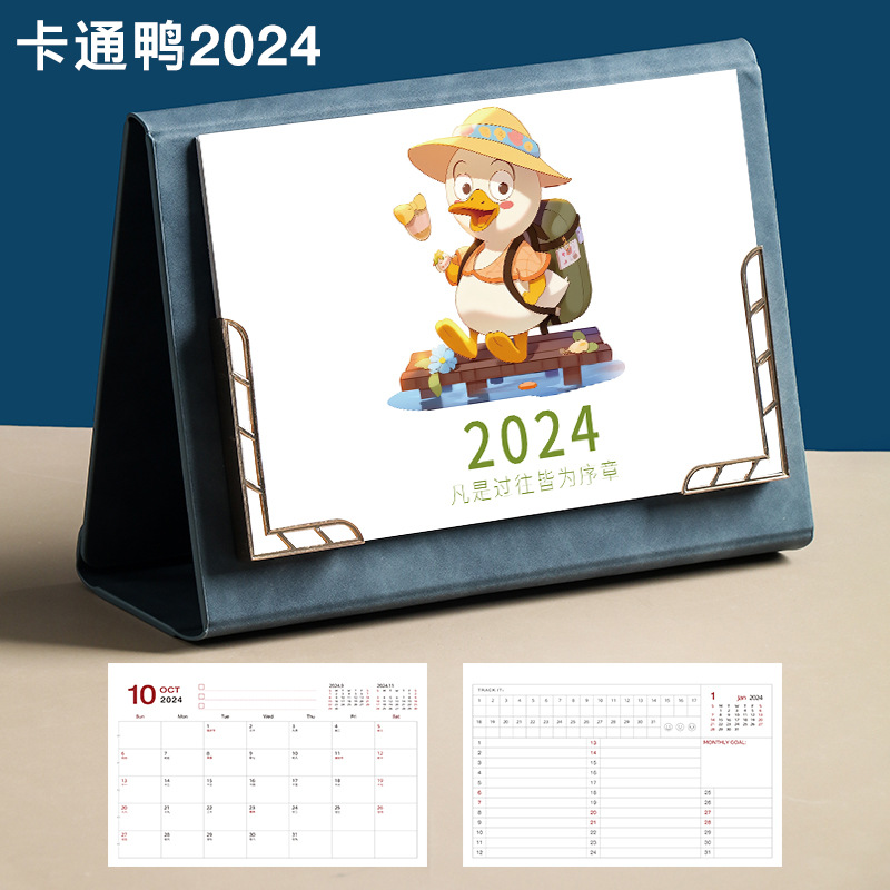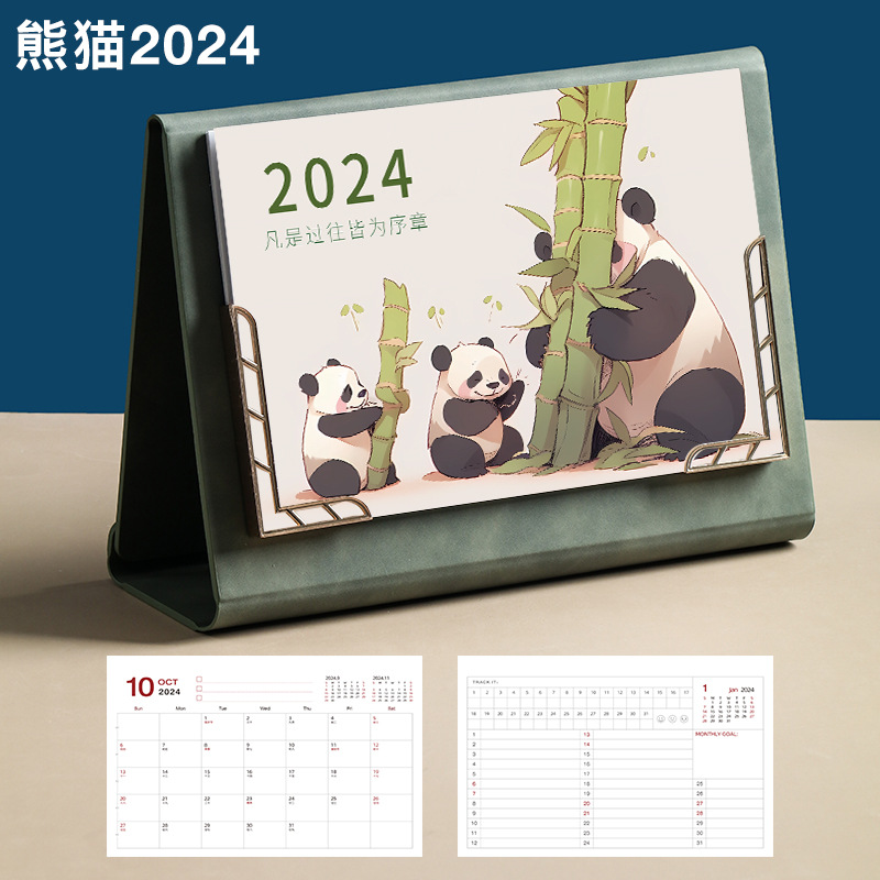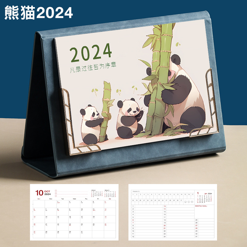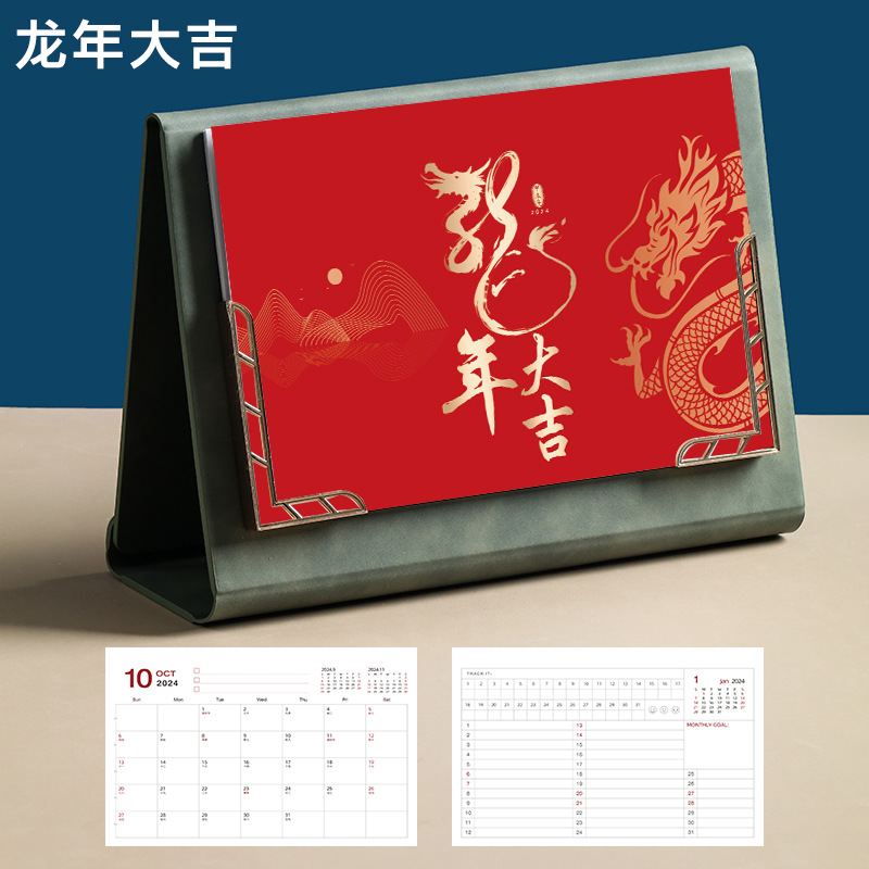 Leather desk calendar 2024 wall calendar tri-fold photo frame monthly planner office decor gift memo planning book logo printing available