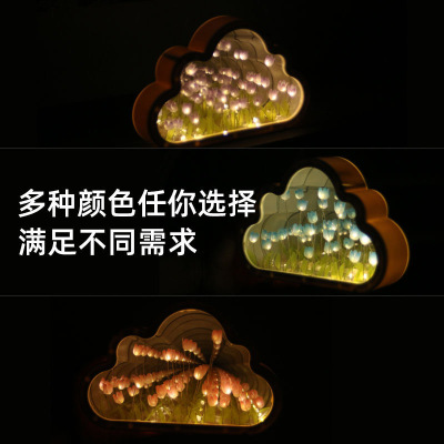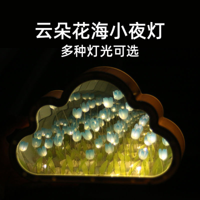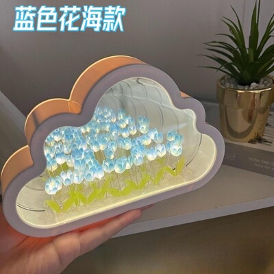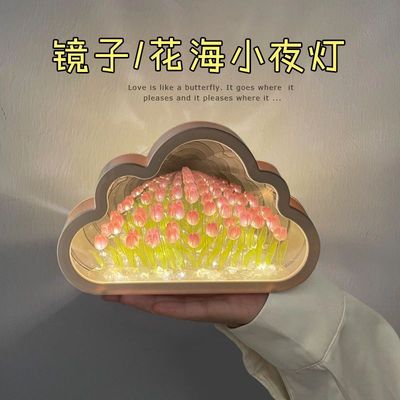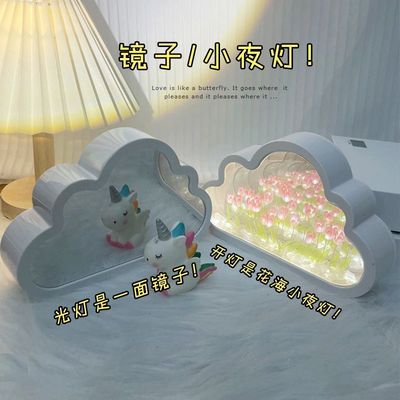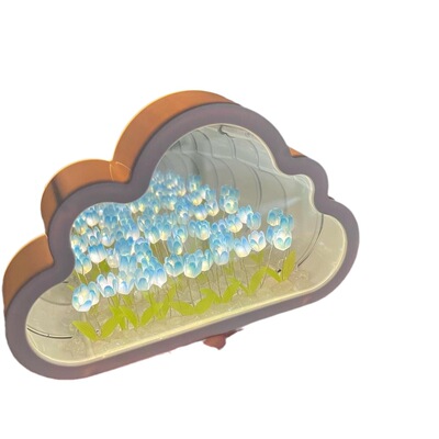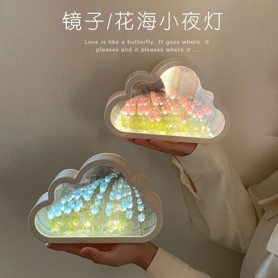 鬱金香雲朵小夜燈桌面擺件DIY鏡子高級感氛圍女生日禮物情人節送