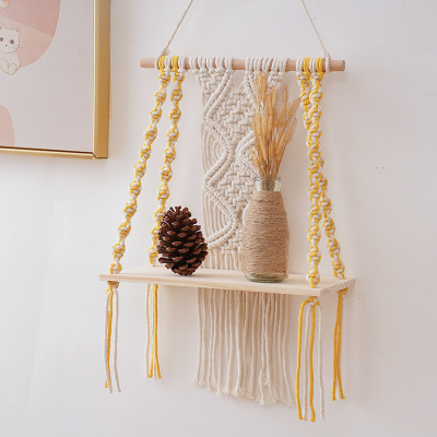 Cross-border best-selling handmade woven tapestry cotton rope wall hanging Bohemian storage rack hotel homestay children's room decoration