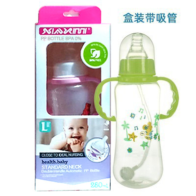 Newborn Baby Standard-Caliber Food-Grade PP Feeding Bottle, 280mL, Pack of 1 with Breastfeeding Nipple and Straw