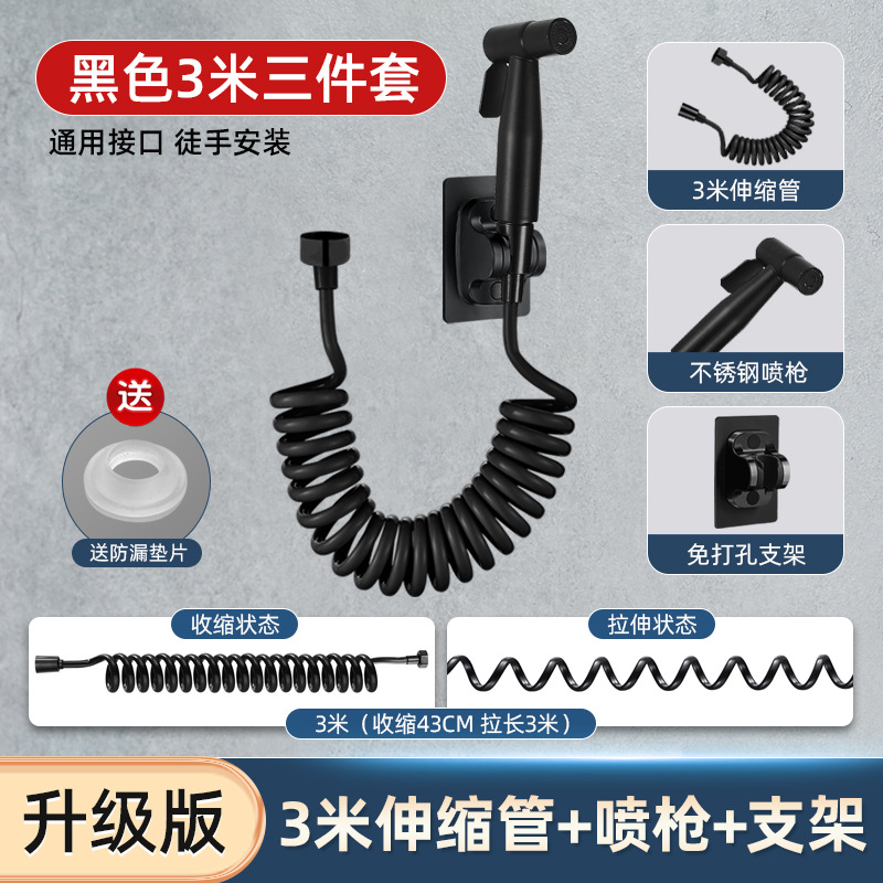 Specifications: [Black] Upgraded 3-meter telescopic tube + 304 stainless steel spray gun + punch-free bracket