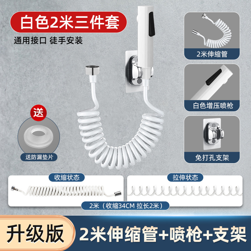 [White] Upgraded 2-meter telescopic tube + 304 stainless steel spray gun + punch-free bracket