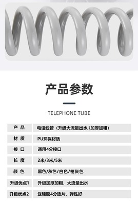 Gun gray thickened phone cord telescopic water pipe extension spring bathroom toilet spray gun shower shower hose