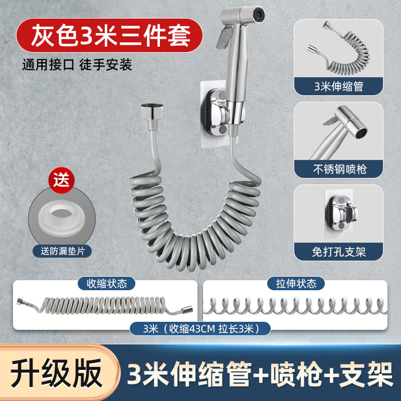 Specifications: [Gray] Upgraded 3-meter telescopic tube + 304 stainless steel spray gun + punch-free bracket