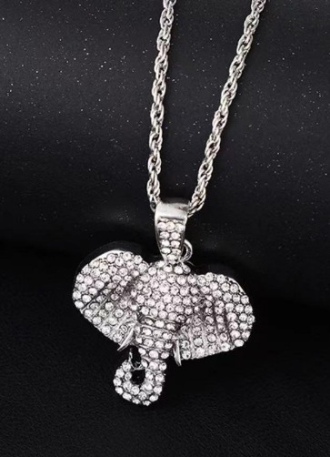 New European and American retro elephant head hip hop pendant ins silver gold plated alloy animal necklace jewelry wholesale