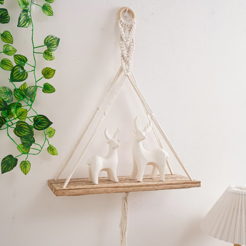 北歐波西米亞手工編織掛毯置物架復古色牆上木板客廳民宿玄關壁掛