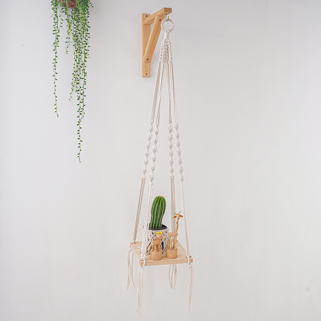 波西米亞手工編織掛毯正方形置物架壁毯客廳臥室民宿盆栽綠植壁掛