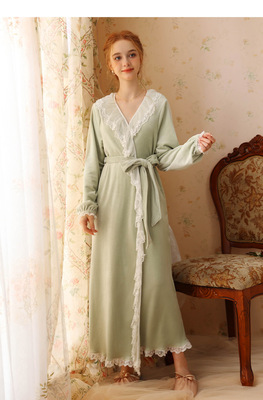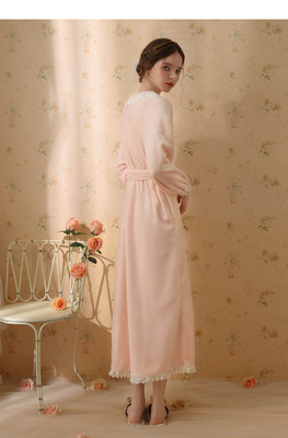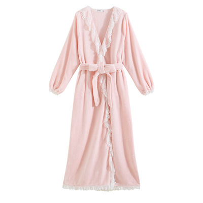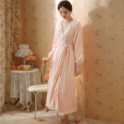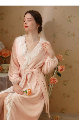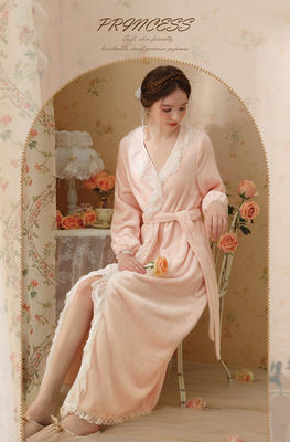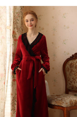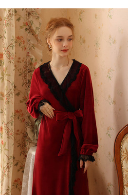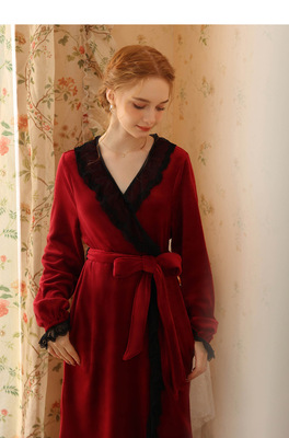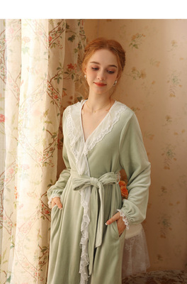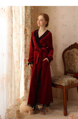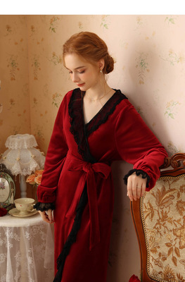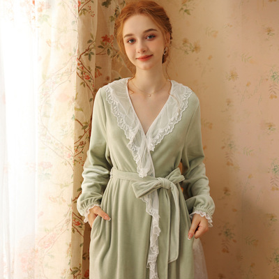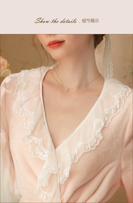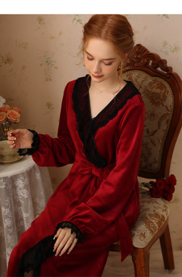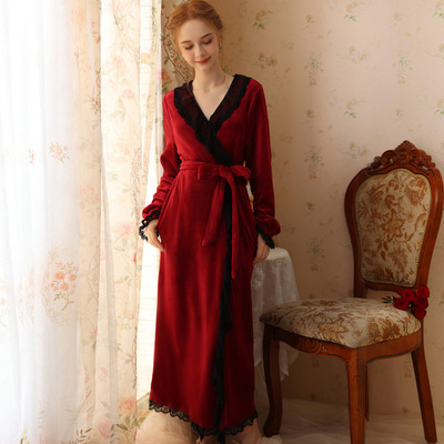 Autumn and winter sexy lace nightgown coral velvet girl palace style French retro long-sleeved long flannel pajamas