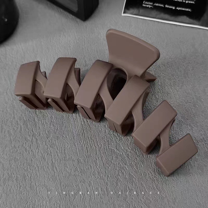 奶咖色抓夾女磨砂夾子頭飾感發卡毛絨髮夾大號鯊魚夾發抓批發