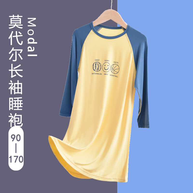 60 pieces of modal children's pajamas for boys, winter and autumn long-sleeved baby home clothes, middle child sleepwear and robes