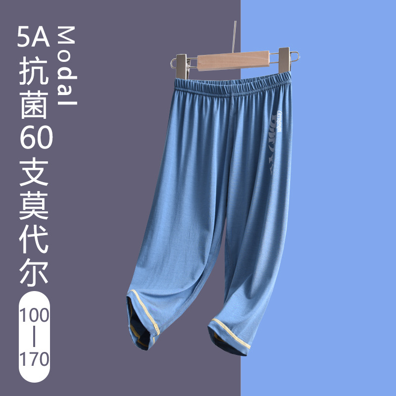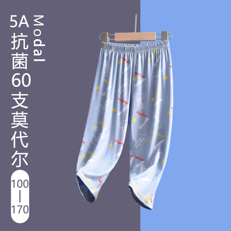 60支莫代爾奧特曼兒童家居服睡褲夏季薄款男童空調服寶寶七分褲