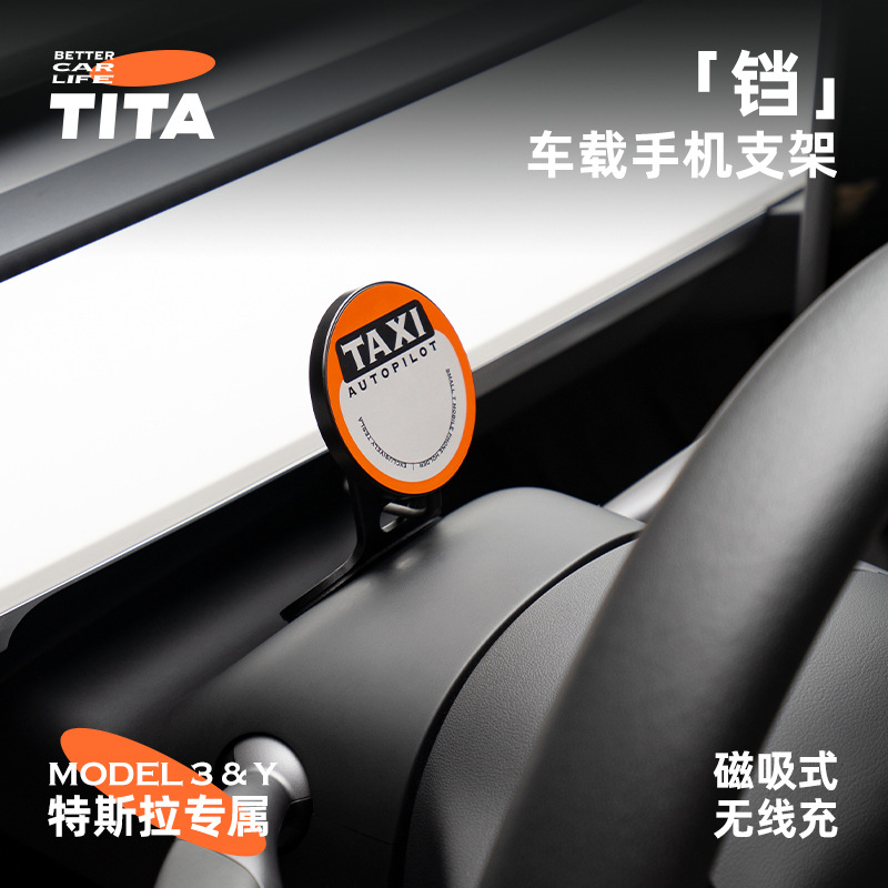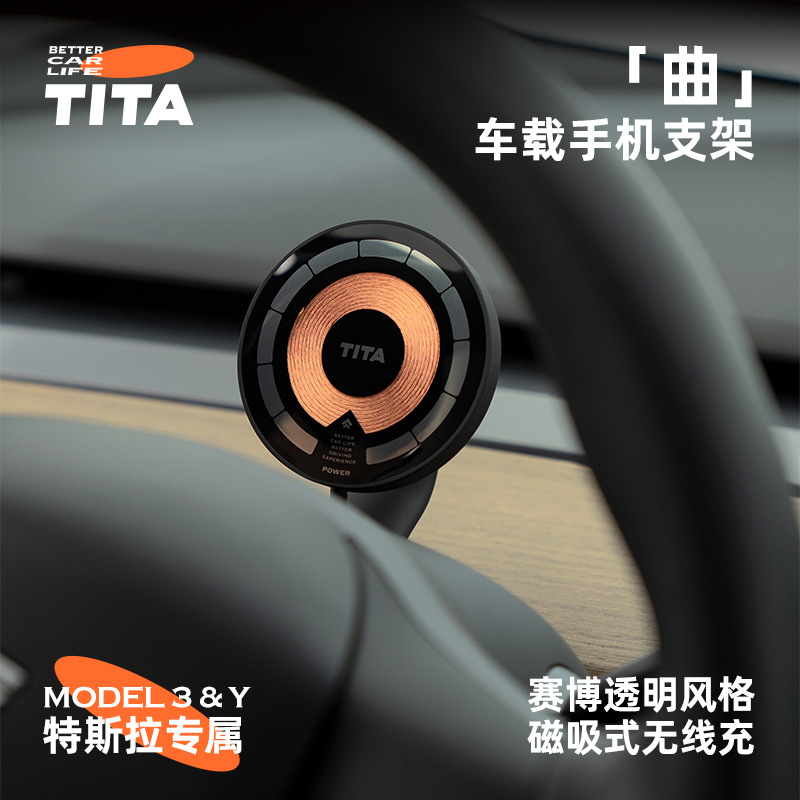 TITA Tesla car holder wireless charging fast charging suitable for Model 3/Y magnetic steering wheel mobile phone holder