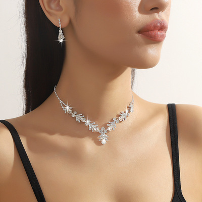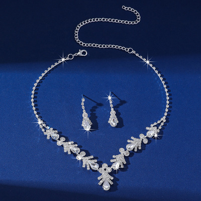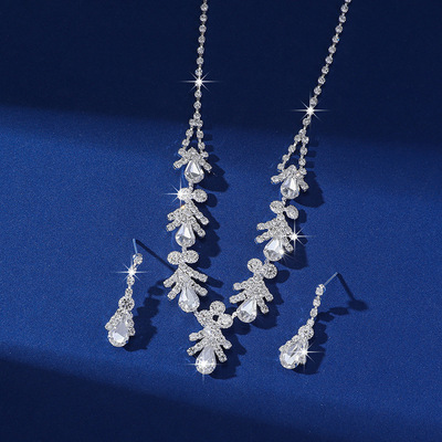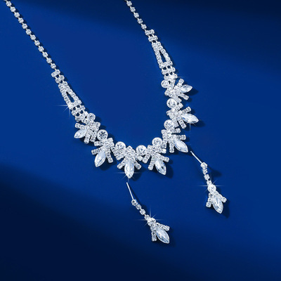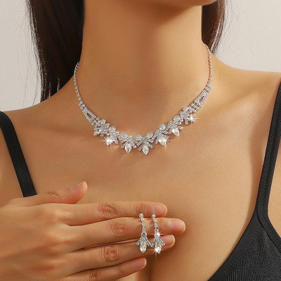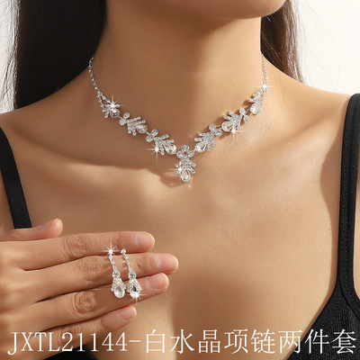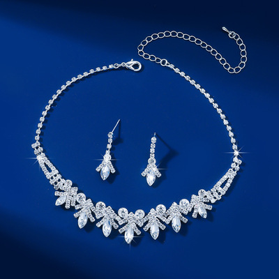 跨境貨源 歐美流行飾品白水晶水鑽項鍊耳環二件套裝婚紗禮服配飾