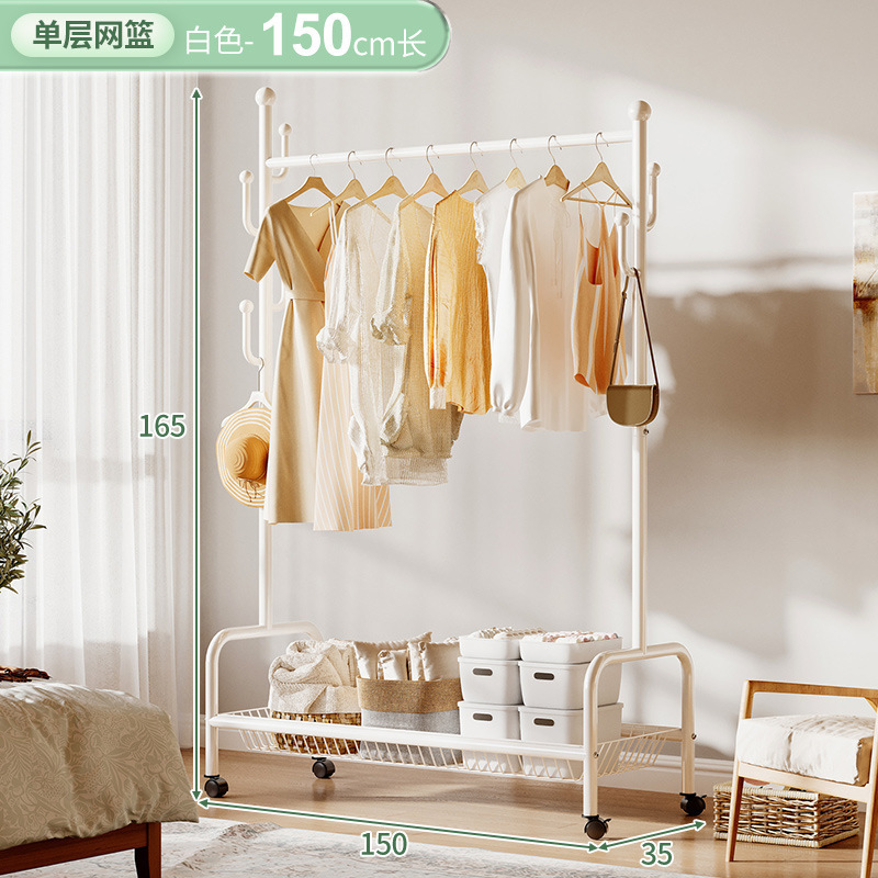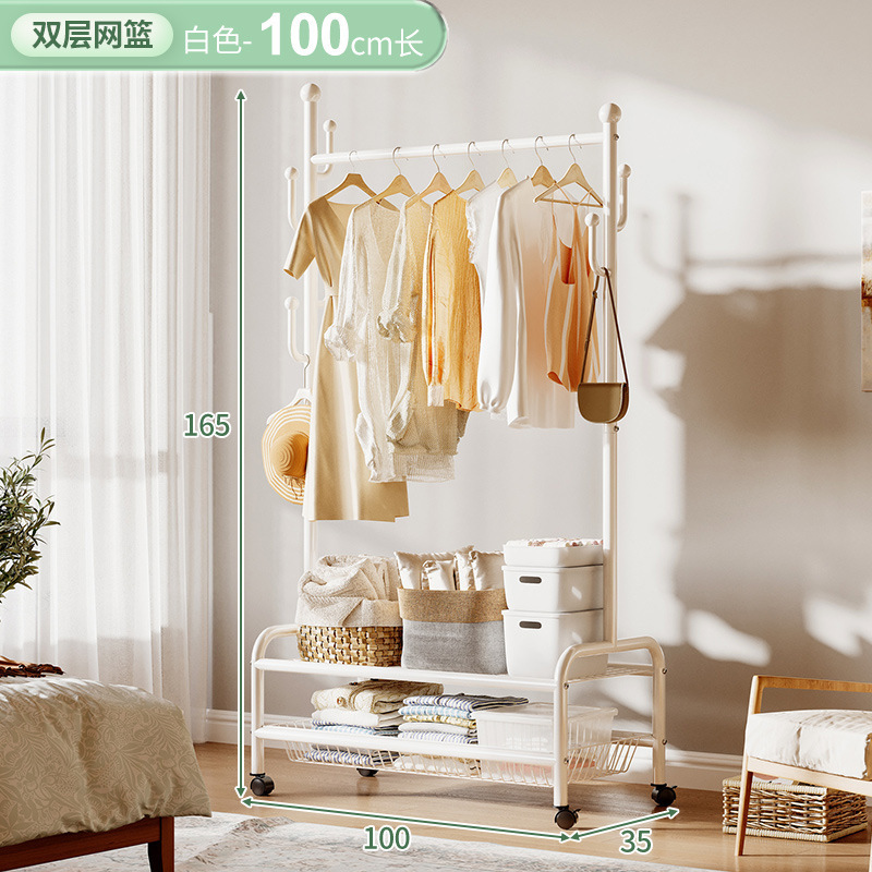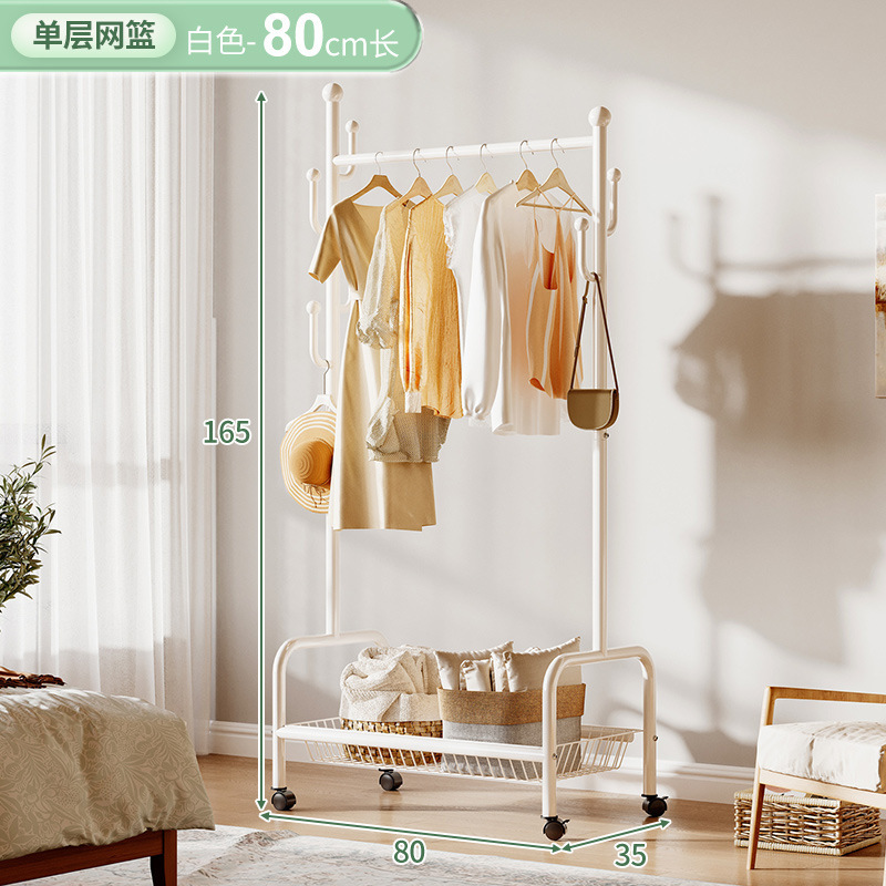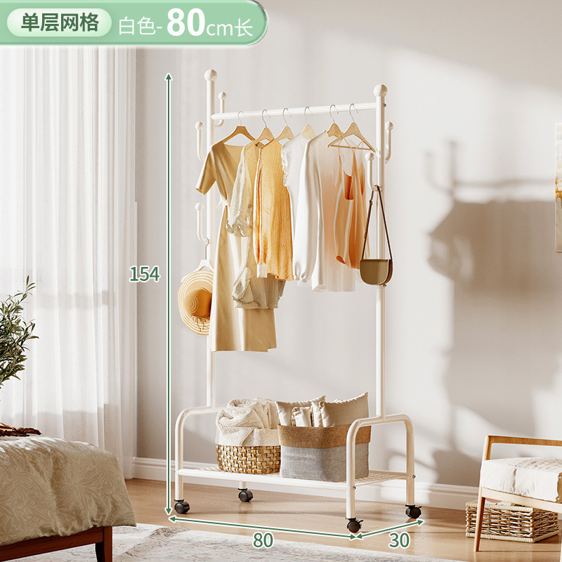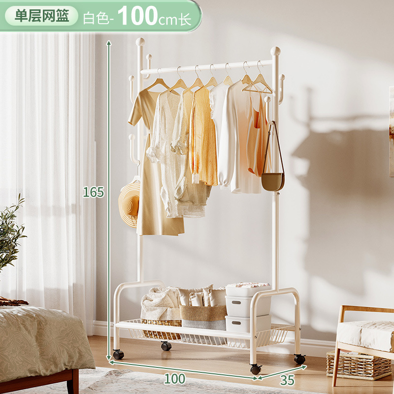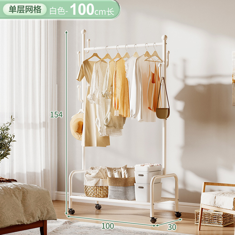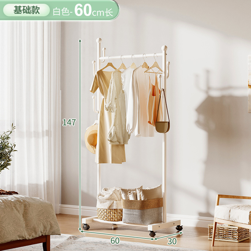 奶油風鐵藝可移動式帶輪衣帽架落地臥室衣服掛架衣架收納架掛衣架