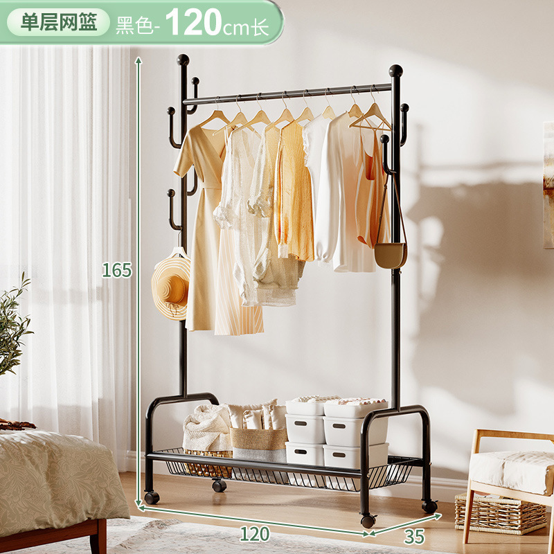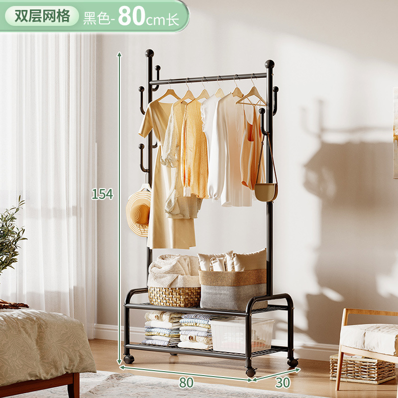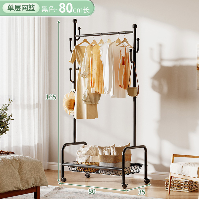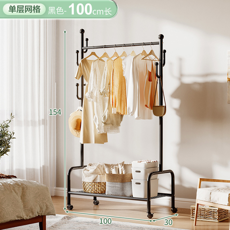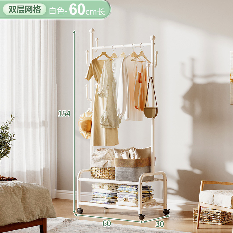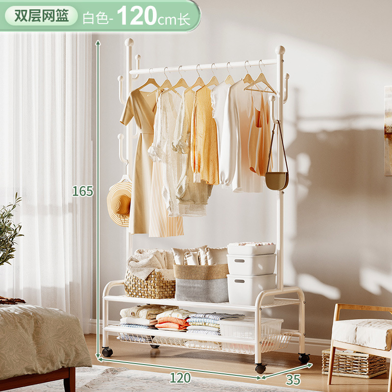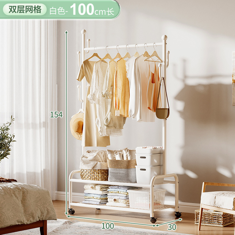 奶油風鐵藝可移動式帶輪衣帽架落地臥室衣服掛架衣架收納架掛衣架
