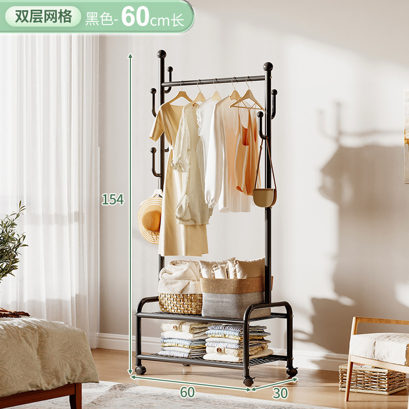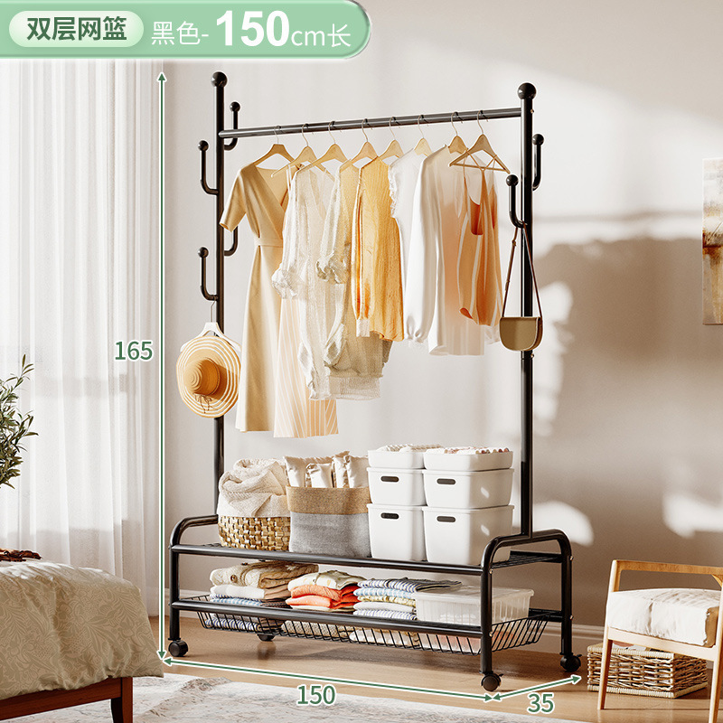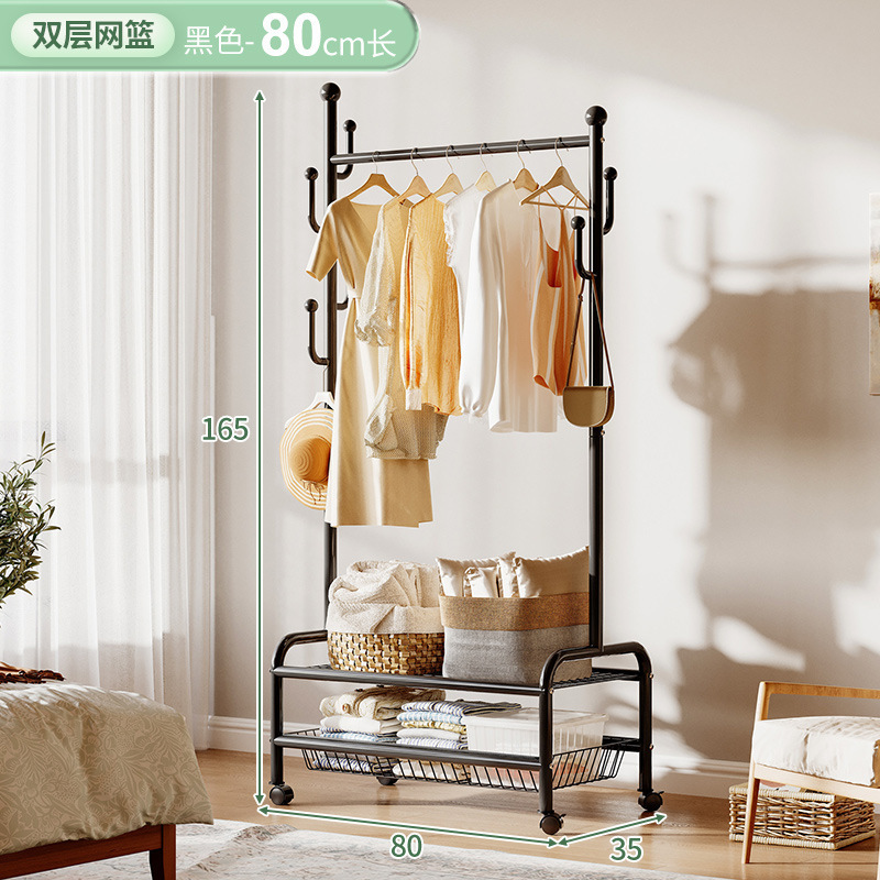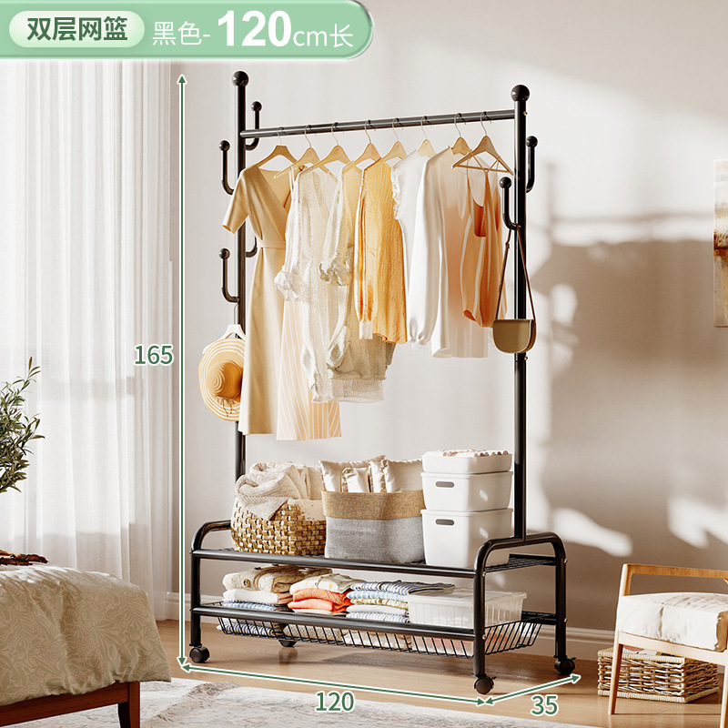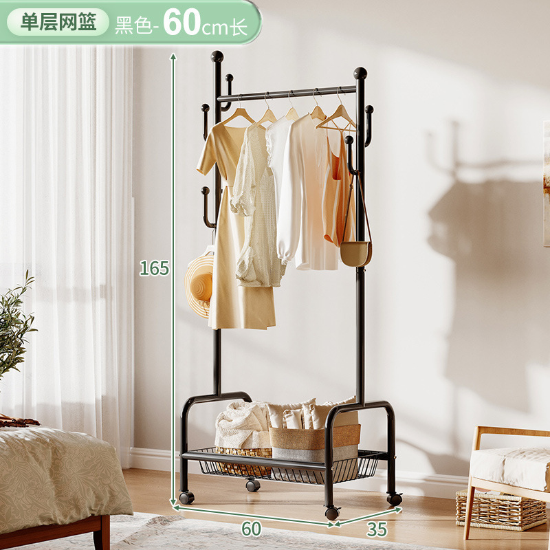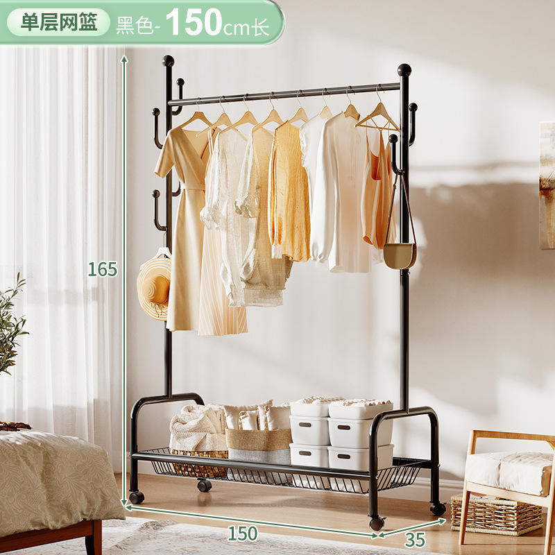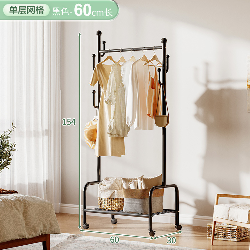 奶油風鐵藝可移動式帶輪衣帽架落地臥室衣服掛架衣架收納架掛衣架