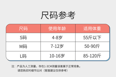 XS size (suitable for children aged 7-12, weight 50-90斤)
