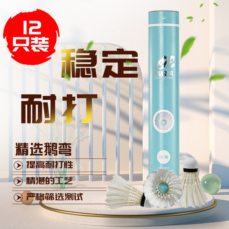 Antarctic style new small curved goose feather ball indoor durable badminton training training ball with stable flight 12 pieces