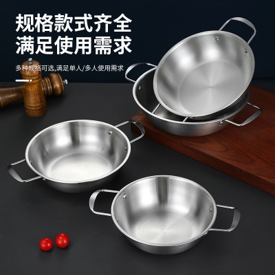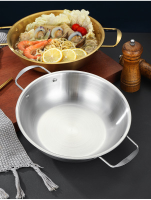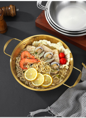 Stainless steel seafood rice cooker Korean ramen pot gold-colored military hot pot soup pot commercial dual-eared flat dry pot basin