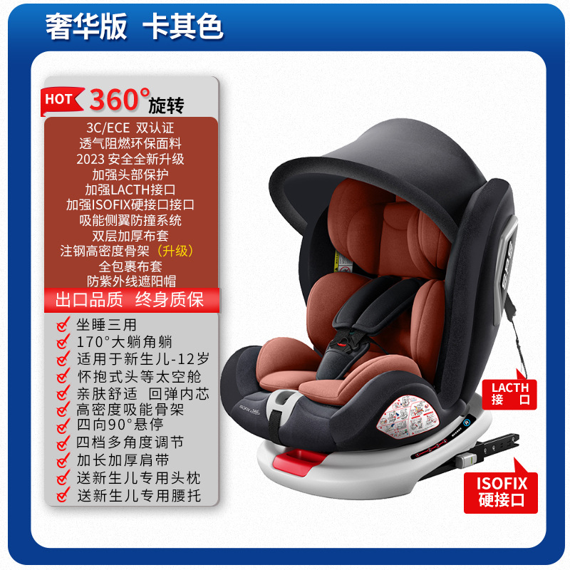 Flagship version khaki [isofix+latch+360° rotation] + side protection + 170° lying angle + 90° hovering