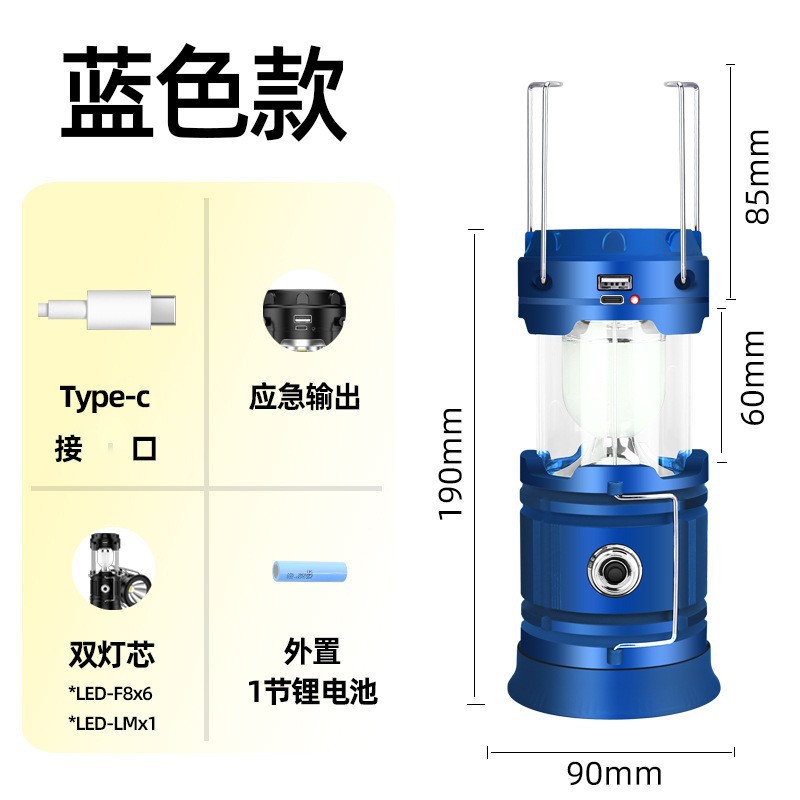 COB high-brightness blue, camping lamp + 18650 battery + TYPE-C cable + color box packaging
