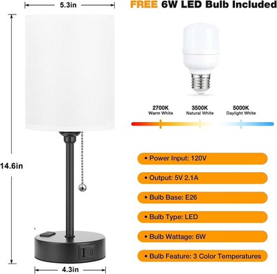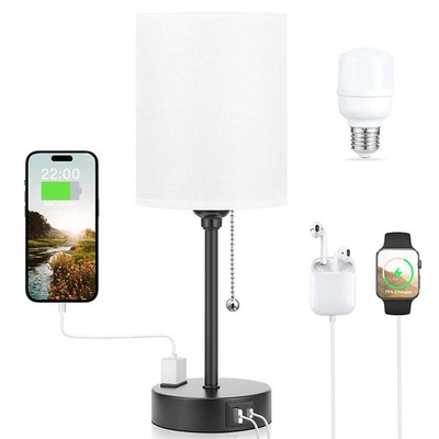 Amazon AliExpress style USB phone charging fabric desk lamp for study room bedroom with zipper switch and US standard.