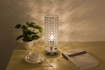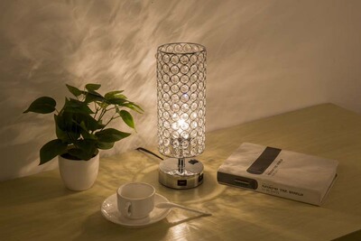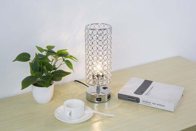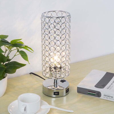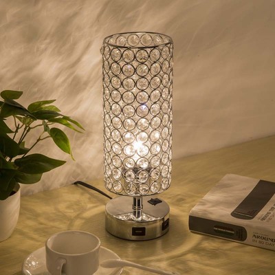 跨境專供現代簡約USB充電水晶檯燈桌燈臥室床頭裝飾小夜燈亞馬遜