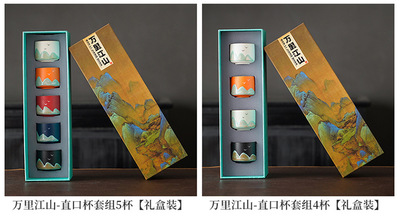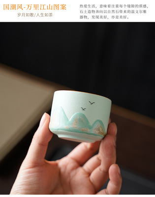 陶瓷窯變山水茶杯套裝千里江山主人杯個人單杯禮物禮盒茶具茶杯套
