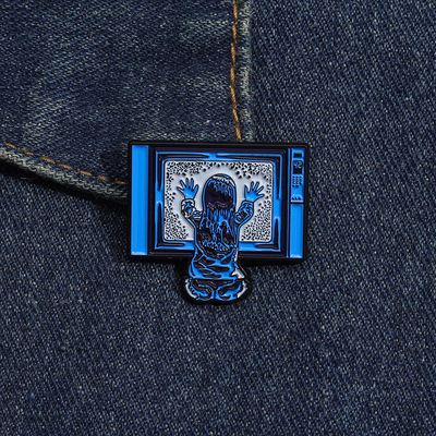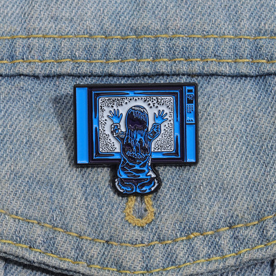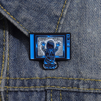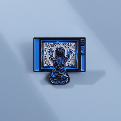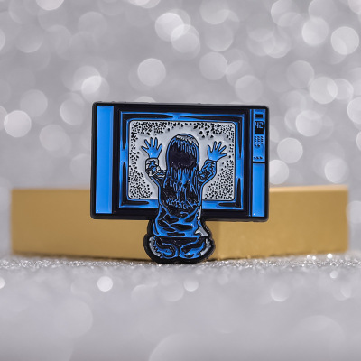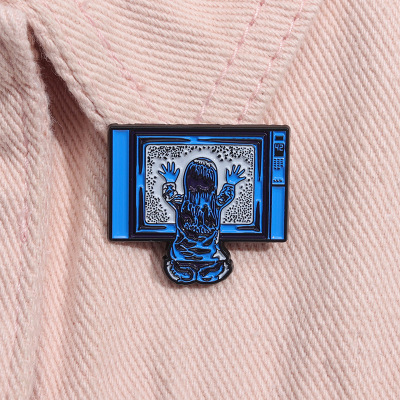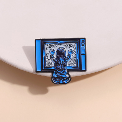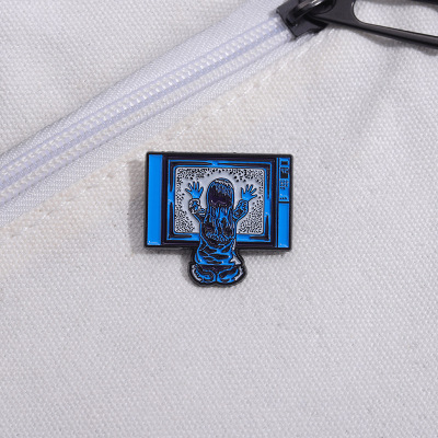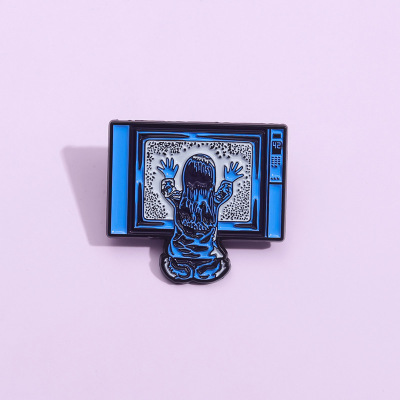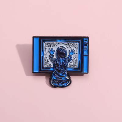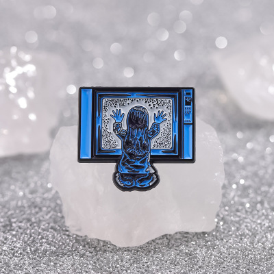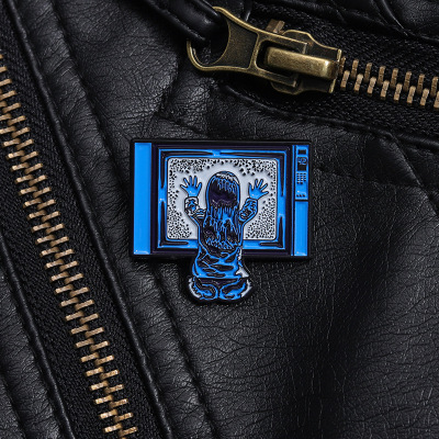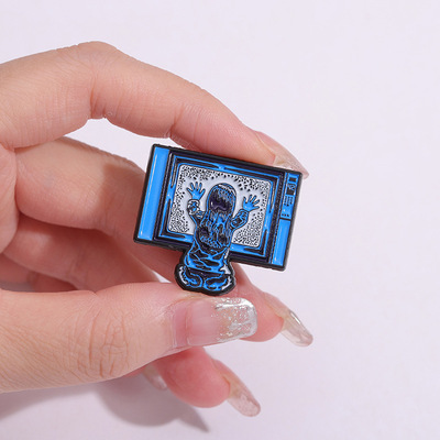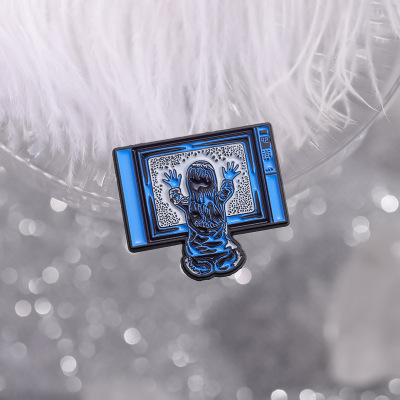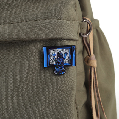 創意坐在電視機前的小女孩造型胸針個性跨境卡通人物造型金屬徽章