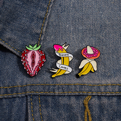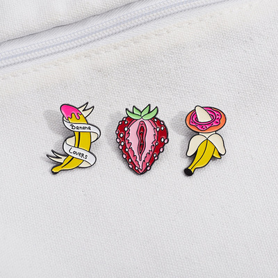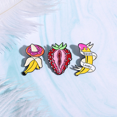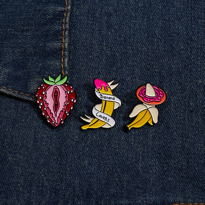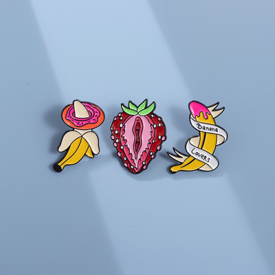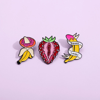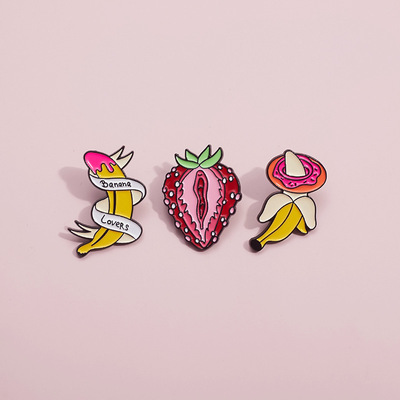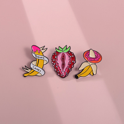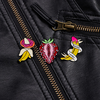 跨境電商新款時尚百搭水果系列合金胸針個性絲帶香蕉烤漆徽章批發