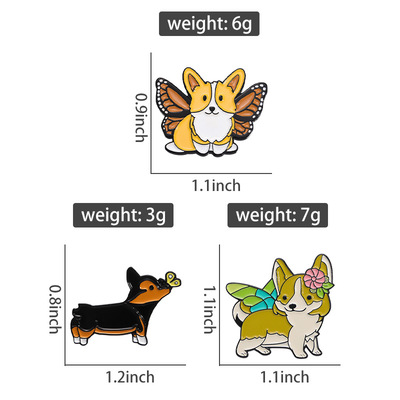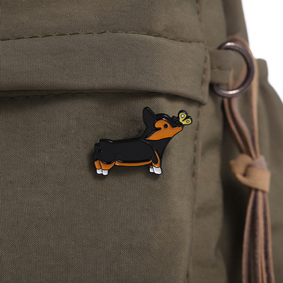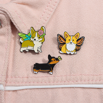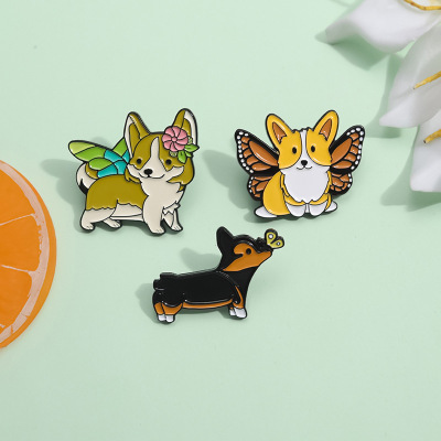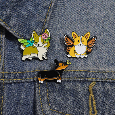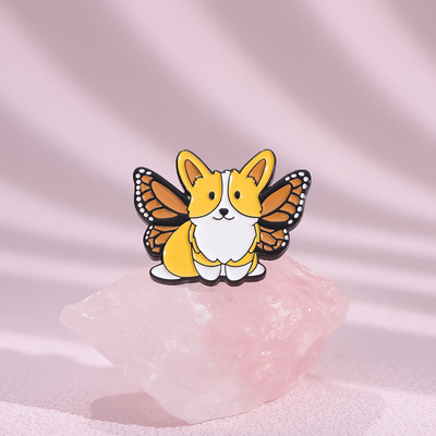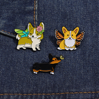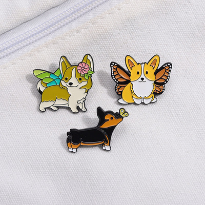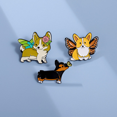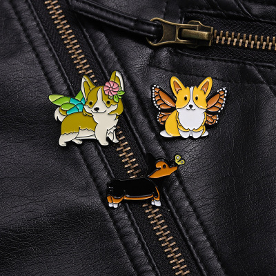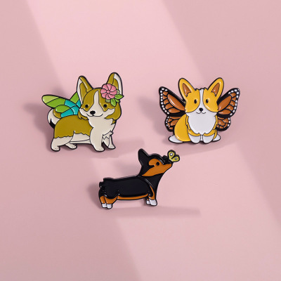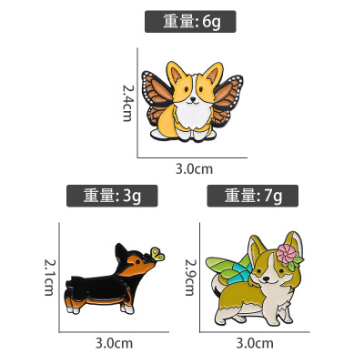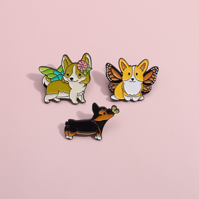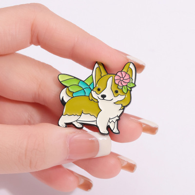 跨境卡通動物合金徽章服裝配飾狗狗柯基翅膀裝飾領針胸針批發